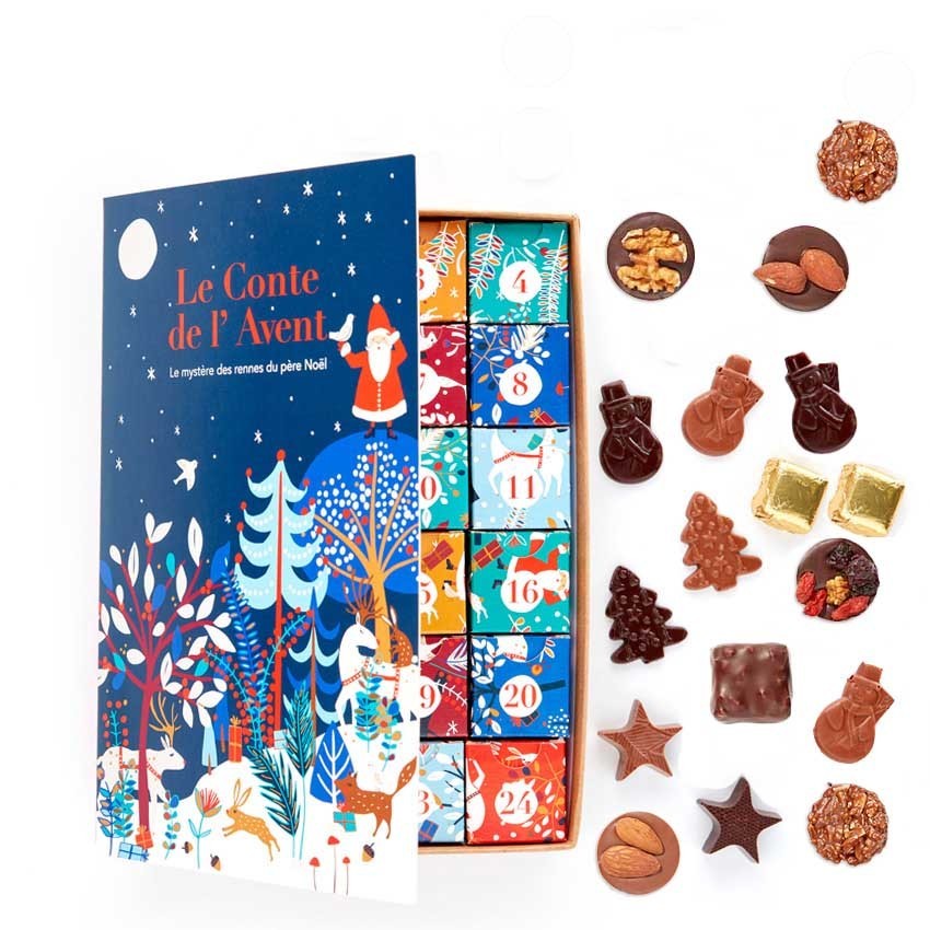 Un calendrier de l'avent qui se présente comme un livre plein de douceurs chocolatées pour vous faire plaisir