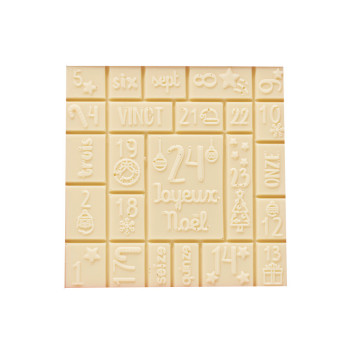 Coffret rouge garni d'un calendrier de l'avent en chocolat blanc. Vous pourrez croquer un carré de chocolat avec le numéro du jour pour patienter jusqu'à Noël. Ce calendrier de l'Avent est fait pour tout le monde : enfants, ados et adultes ! Facile d'utilisation et 24 jours de plaisir !