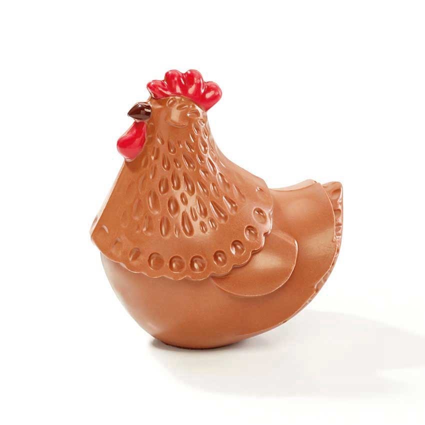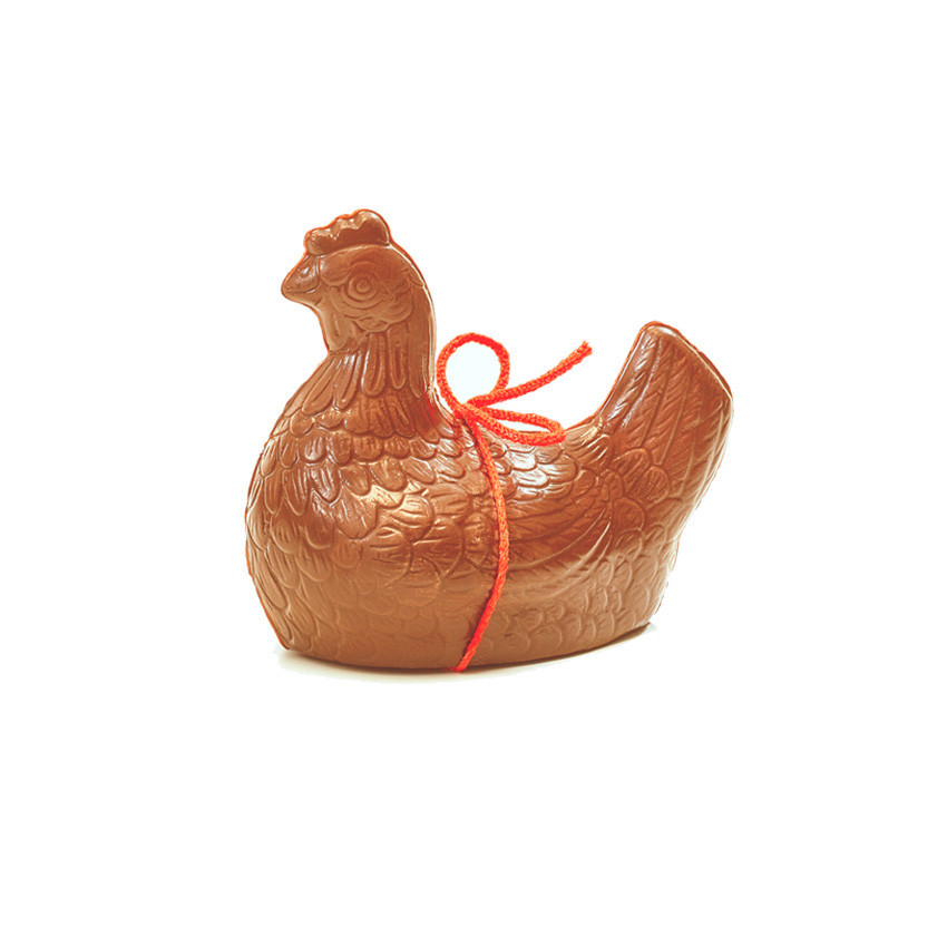 Magnifiques poules en chocolat au lait garnies :