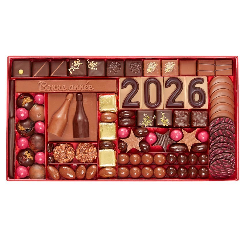 â—Ź Plaques de chocolat au lait et chocolat noir avec la gravure "Bonne Année"